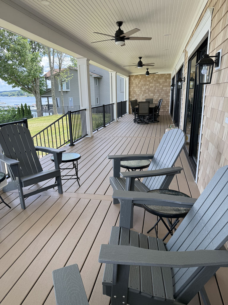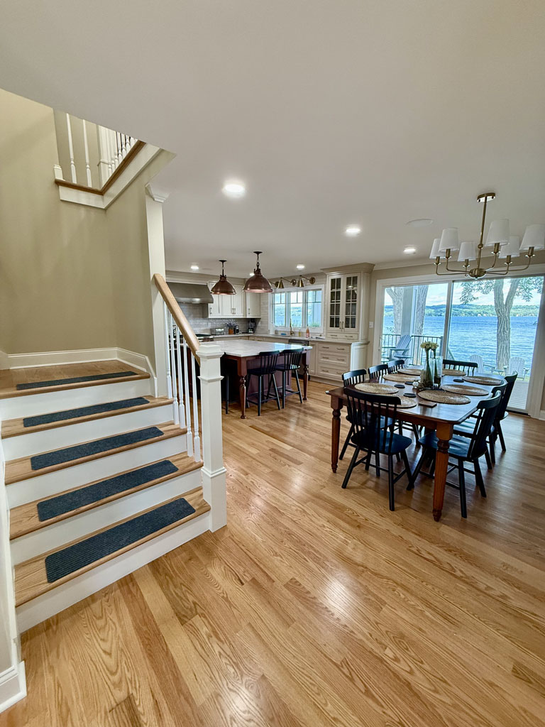 • Lake view – This house is directly lakeside w/gorgeous lake views from 4 of 5 bedrooms, kitchen, dining, living room and back deck.